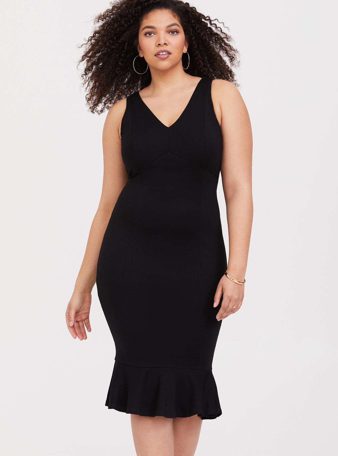 Plus Size Black Premium Ponte Flounce Dress Torrid